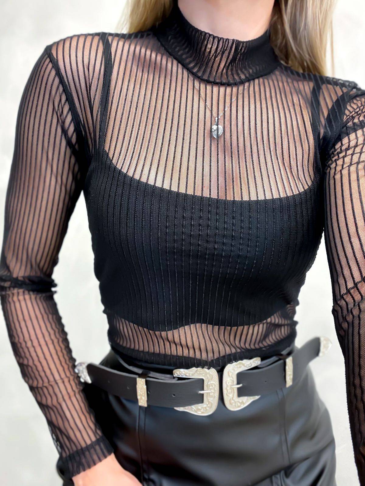 Charme e modernidade em uma peça só! O Body Ariana é confeccionado em tule listrado, trazendo transparência e elegância para seu look. Com gola delicada e fecho entrepernas, ele oferece praticidade sem abrir mão do estilo. Ideal para compor produções versáteis, do casual ao mais sofisticado.