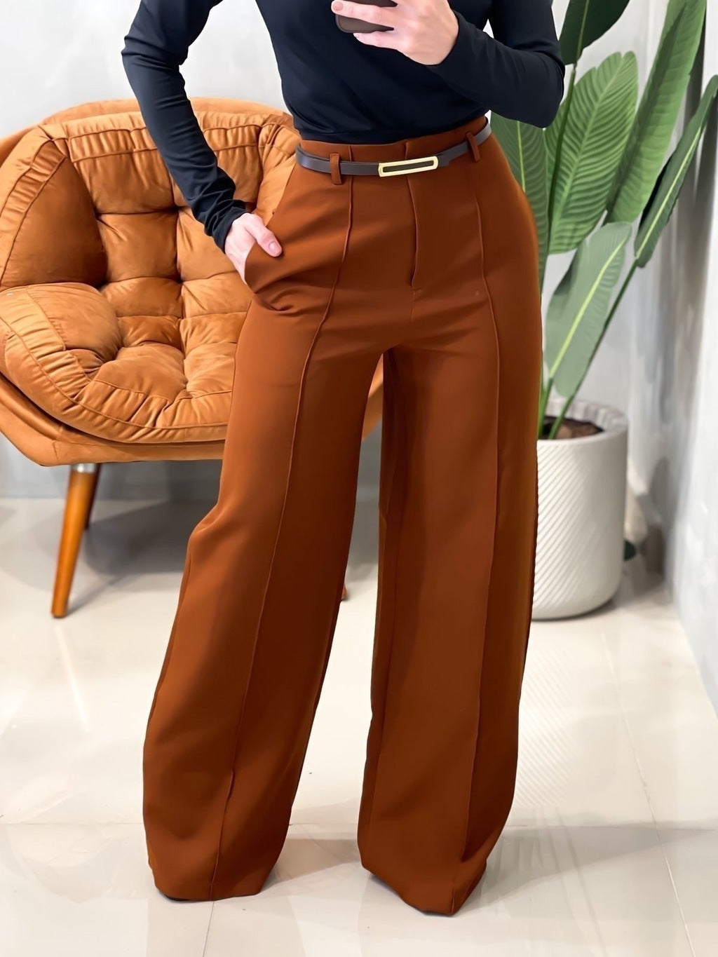 ✔ Modelagem pantalona que alonga a silhueta