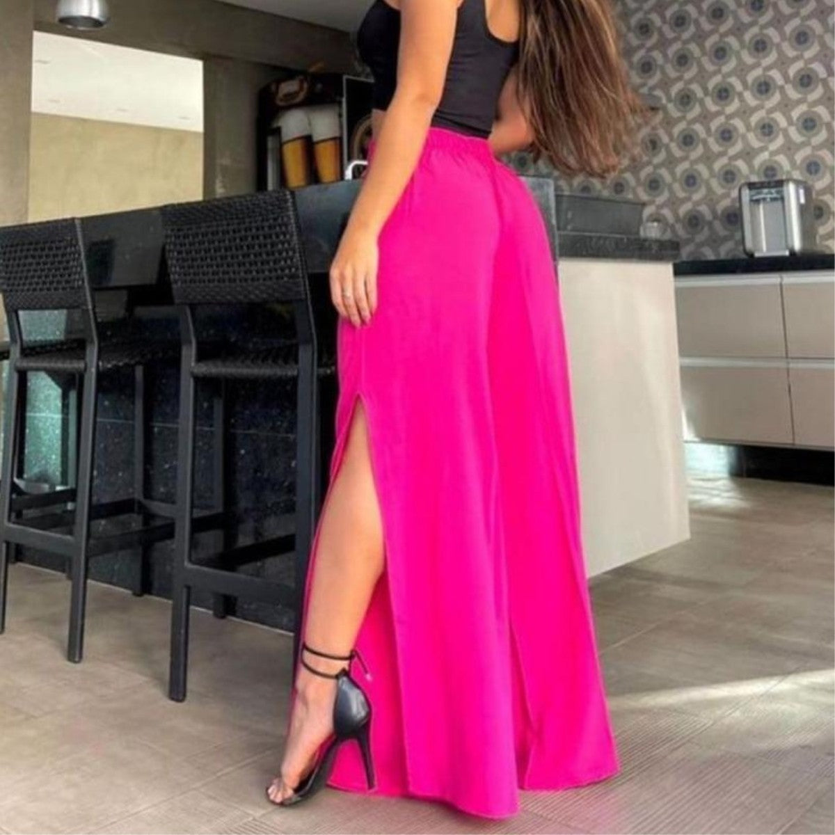 Calça Pantalona Com Fenda Lateral Tendência Moda Blogueira Conforto