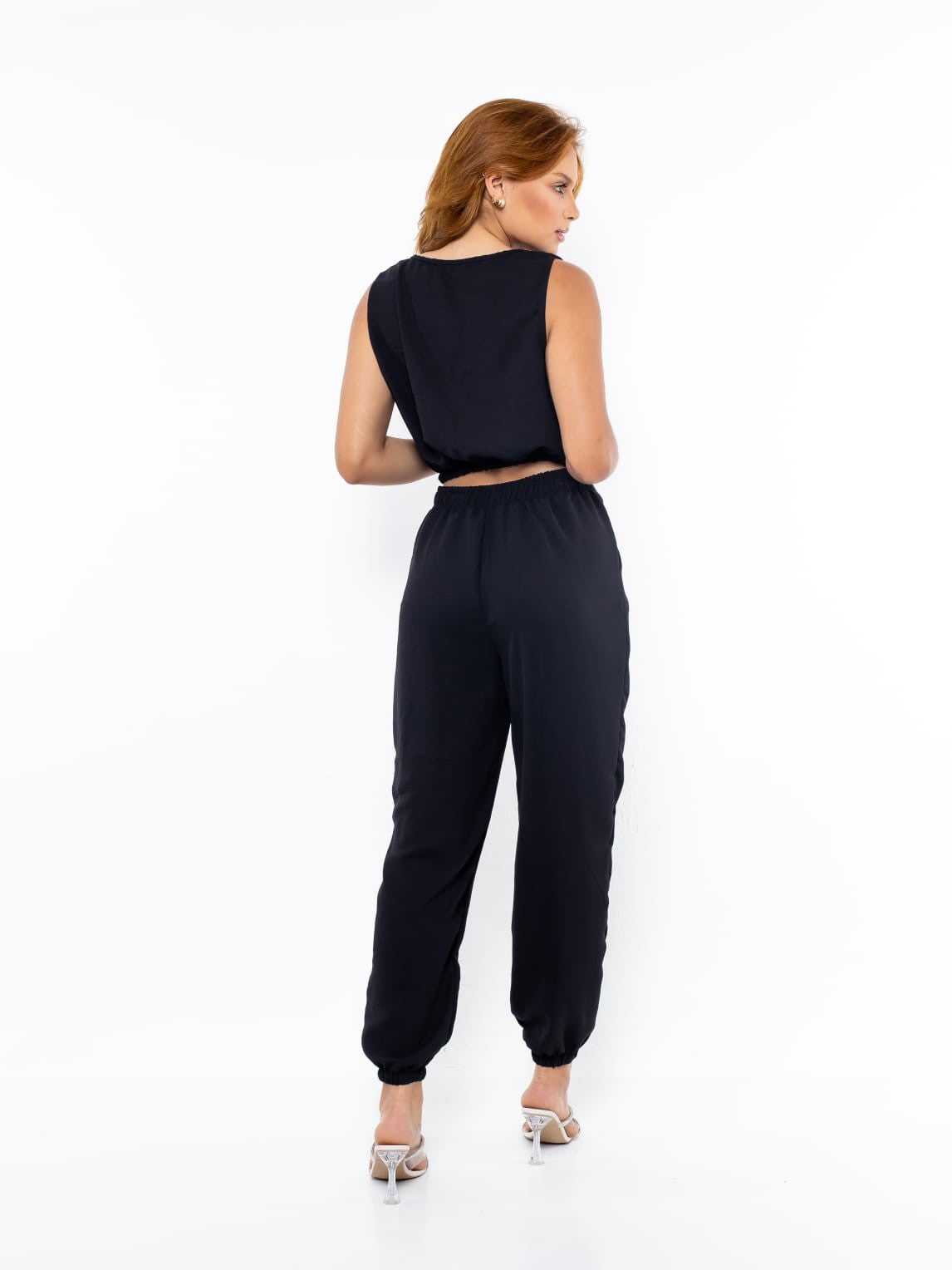 Conforto e estilo para todas as ocasiões! O conjunto é confeccionado em tecido Duna, oferecendo caimento leve e moderno, ideal para os dias de primavera/verão. O cropped de manga regata combinado à calça cria um visual prático e versátil, perfeito para quem busca elegância sem abrir mão do conforto.