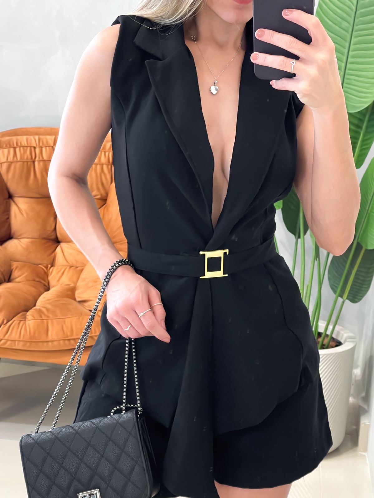 Este conjunto em alfaiataria sensoriale é ideal para quem busca sofisticação com praticidade. O shorts com bolsos laterais e o cinto incluso valorizam a silhueta, enquanto a modelagem impecável proporciona estilo e conforto em qualquer ocasião.