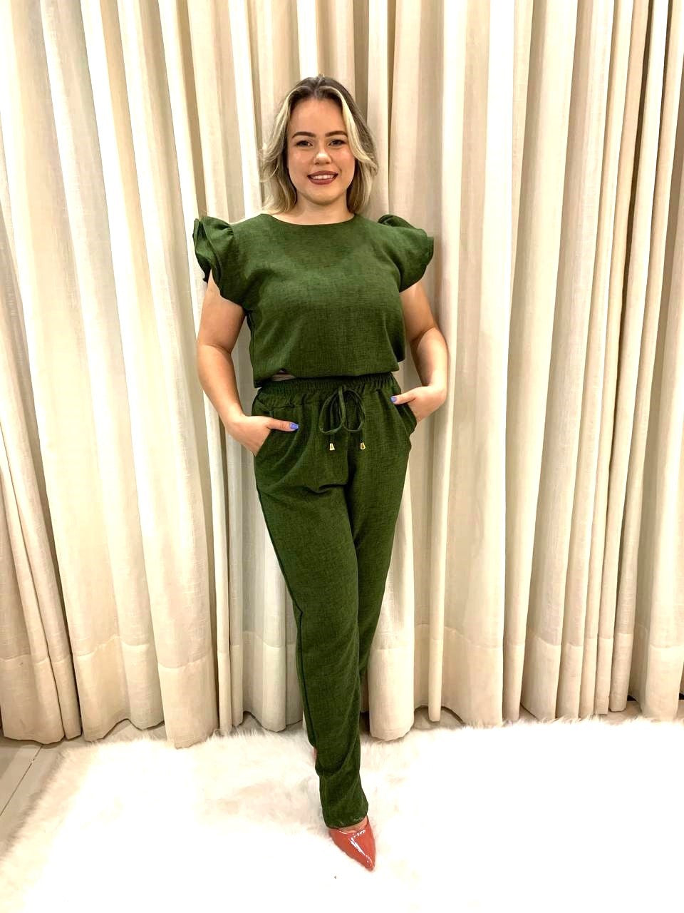 O Conjunto Feminino com Babado na Manga traz um visual sofisticado e moderno, perfeito para o escritório, eventos sociais ou aquele passeio especial.