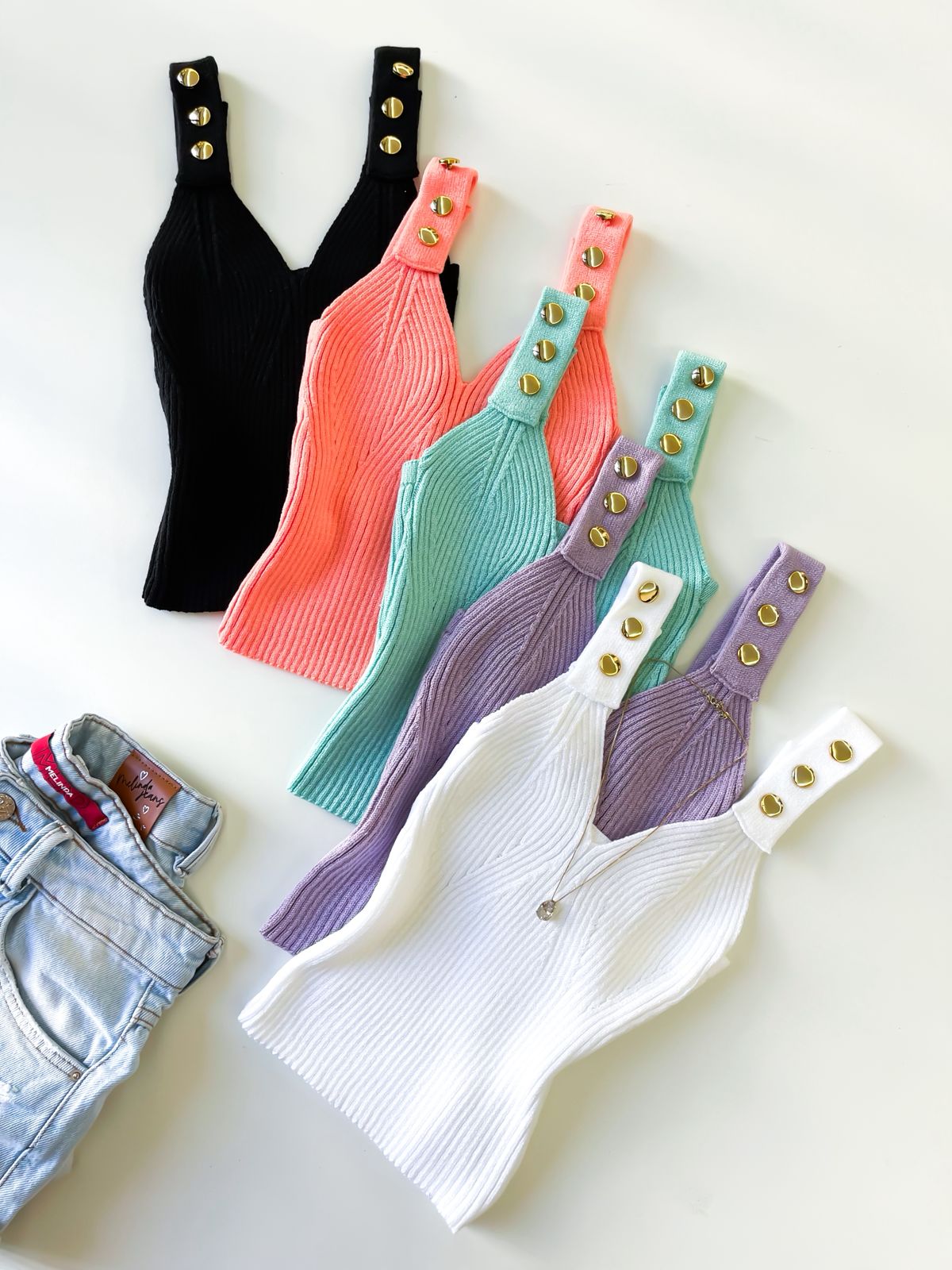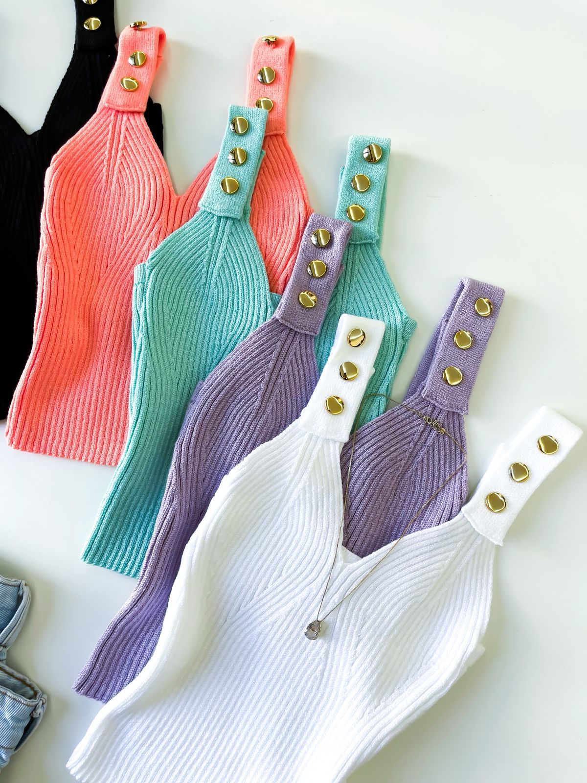 ✨ Cropped em Tricô Modal de Alça com Botões ✨