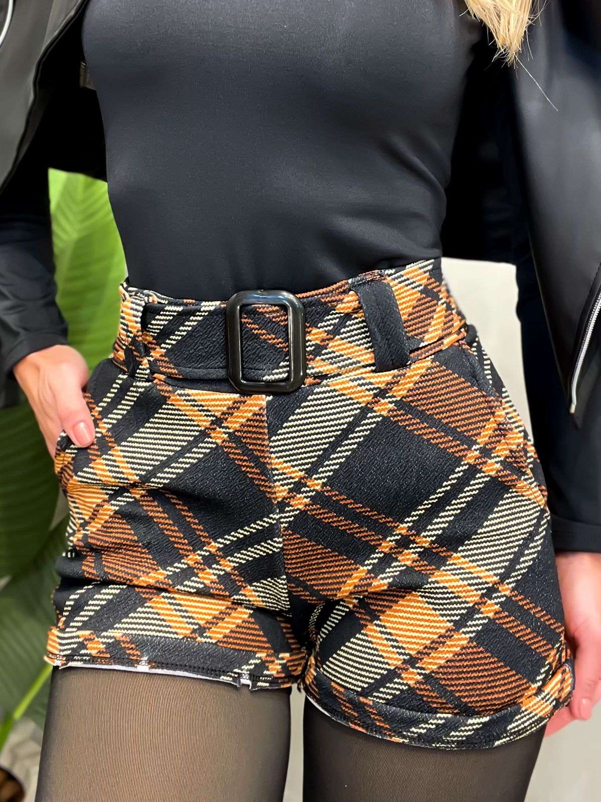 ✨ Shorts Xadrez com Cinto Embutido – Thamy Ref. 1513 ✨